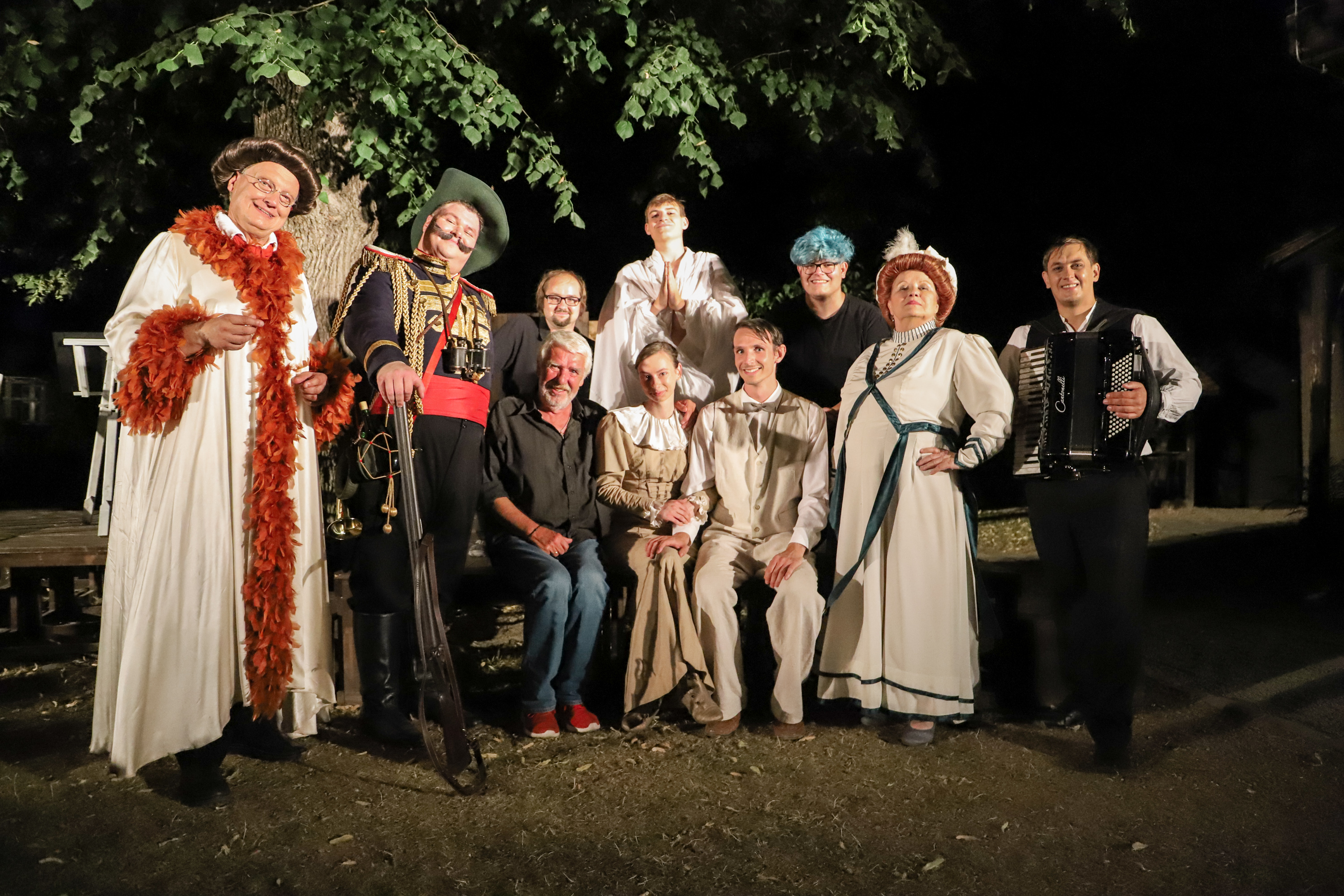 Bestens unterhalten applaudierte das Publikum dem theater-spiel-laden Rudolstadt zum gefeierten Sommertheater-Start am vergangenen Wochenende im Hof der Bauernhäuser mit der dramatischen Komödie „Genoveva oder Die weiße Hirschkuh“. Bürgermeister Jörg Reichl nutzte den vergnüglichen Sommerabend im historischen Ambiente, dem Ensemble „im Namen der Stadt Rudolstadt“ zum 60-jährigen Bestehen des theater-spiel-ladens mit einer Urkunde zu gratulieren: