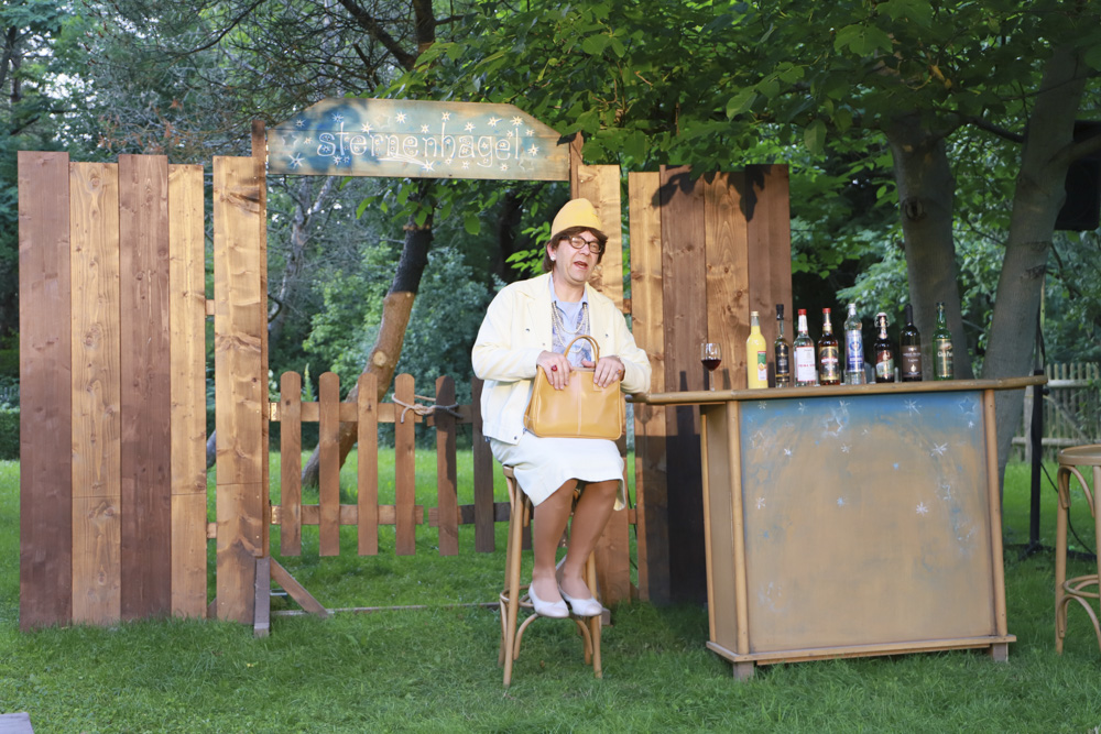 Gewitzt und verschmitzt schlängelt sie sich spielend, plaudernd und singend durch mehr oder weniger gute Zeiten. Sie lässt kaum ein Fettnäpfchen aus und ist nie um einen cleveren Spruch verlegen – großzügig im Austeilen, aber auch im Einstecken nicht zimperlich – dieses Mal im Schlepptau mit Schlagern.